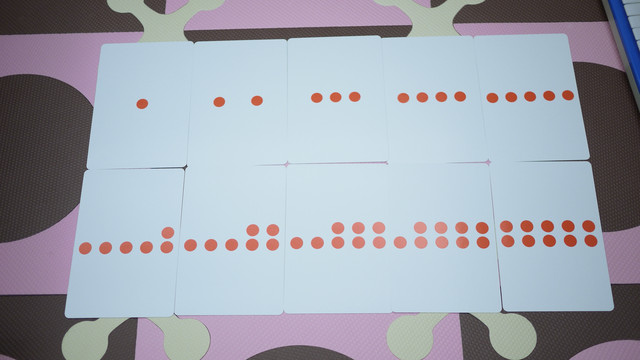 KUMON設計的就是很單純一面紅點點,一面阿拉伯數字這樣