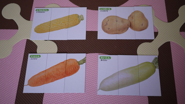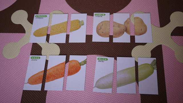 鏘鏘~三等份!! 左上角還有蔬菜名稱的日文平假和片假名